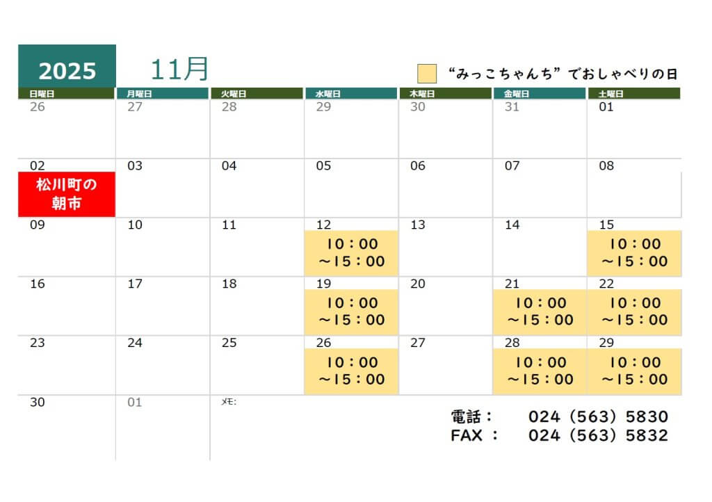 11月の「みっこちゃんち」営業日のご案内 公開済み: 2025年11月3日更新: 2025年11月3日作成者: staff@fspocket.co.jpカテゴリー: お知らせタグ: みっこちゃんち、お茶飲み、おしゃべり いつも「みっこちゃんち」をご利用いただきありがとうございます。 11月の営業日は下記の通りです。 都合により、第2週目からの営業となります。 急に寒くなってきたので、もうストーブを出しました! 焼き芋をつくるための鍋も用意しました。 ぜひお茶飲みしに来てくださいね! 関連記事 5月の「みっこちゃんち」営業日のご案内 いつも「みっこちゃんち」におしゃべりをしに来てくださり、ありがとうございます。 5月の営業日は下記の通りです。 ご案内です。 弊社内に、2021年7月から始まった「松川町の朝市」を主催する、松 […] 公開済み: 2024年4月30日更新: 2024年4月30日作成者: staff@fspocket.co.jpカテゴリー: お知らせタグ: みっこちゃんち, 地域おこし協力隊 1月以降の福島県「来て。」割の受付が始まりました 全国旅行支援の福島県「来て。」割。 年明け1月10日以降のご利用受付が、本日より始まりました。 割引額・クーポンのご利用方法等、今までと変更点が多くなります。 【割引適用期間】 令和5年1月10日(火)~令 […] 公開済み: 2022年12月22日更新: 2023年4月2日作成者: staff@fspocket.co.jpカテゴリー: お知らせタグ: 福島県、来て割、全国旅行支援 「酒米からつくる金水晶・稲刈り編」ツアー中止に関するご案内 平素より、弊社主催ツアー「酒米からつくる金水晶」にご愛顧賜り、厚く御礼申し上げます。 公開済み: 2020年7月28日更新: 2020年7月28日作成者: staff@fspocket.co.jpカテゴリー: お知らせタグ: 金水晶、酒、酒米、未来農業
